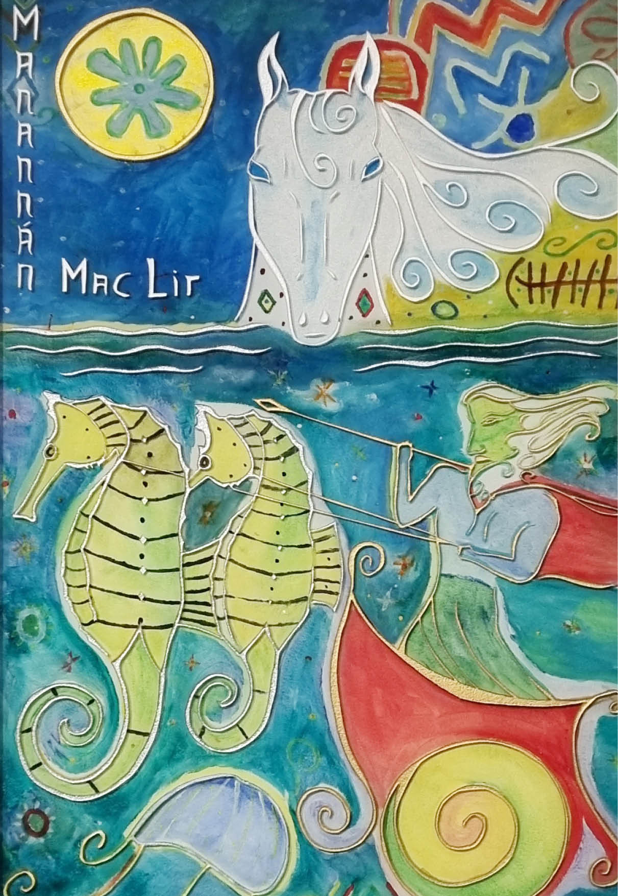 Manannán Mac Lir is a major deity in Irish mythology often seen as a guardian of the Otherworld and a guide for souls travelling between realms. He was a huge figure in the Tuatha de Dannan and is noted for his magical powers. He also has strong associations from Scotland through Wales and the Isle of Man which is named after him. His horse, Aonbharr, had the ability to ride equally well over land or sea which enabled him to travel with ease.